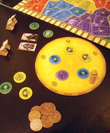 At the end of their turn, players refill their hand with a chit from the rondel; the chit on the position of the mayor is free; all others cost one or two gold.