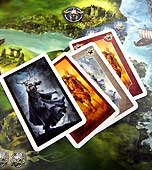 Two identical coloured cards move a druid 2 spaces which at times can be wise in order to skip a dark and negative spot. When all cards have been played, a new round starts with the dealing of 5 new cards. At games end the player has won who managed to complete the most amulets. For 2 tot 5 players 10 years and up, 30 to 45 minutes.