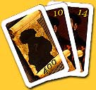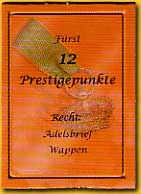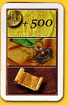 | Dan komen we uit bij de rol van het kaartengeluk: naast de verschillende personen, hebben de kaarten ook verschillende waarden. Soms heb je meer aan vier kaarten met een lage waarde, die je gemakkelijk kan betalen, dan twee (dure) kaarten met een hele hoge waarde. De waarde is immers alleen van belang wanneer het bod ‘staakt’ en iedereen zijn kaarten moet laten zien. In alle andere gevallen is alleen het aantal kaarten van belang. Door goed te ontwikkelen in de ‘ambten’ categorie kunnen extra kaarten verdiend worden, soms zelfs gratis. Hoe meer kaarten, hoe meer keus, dus het belang van de ‘ambten’ ladder moet zeker niet onderschat worden. |